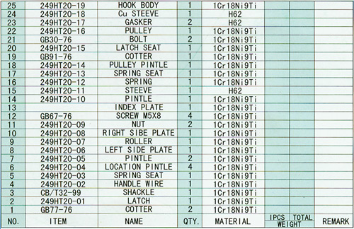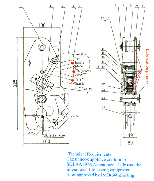 After being used,the release hook should be checked periodically,all the moving parts should always being filled with enough grease:since some parts wore,bent,or the coutractility of spring cannot meet the requirement.the relesing motion not flexible or being locked deadly,then these relatingparts should be changed.